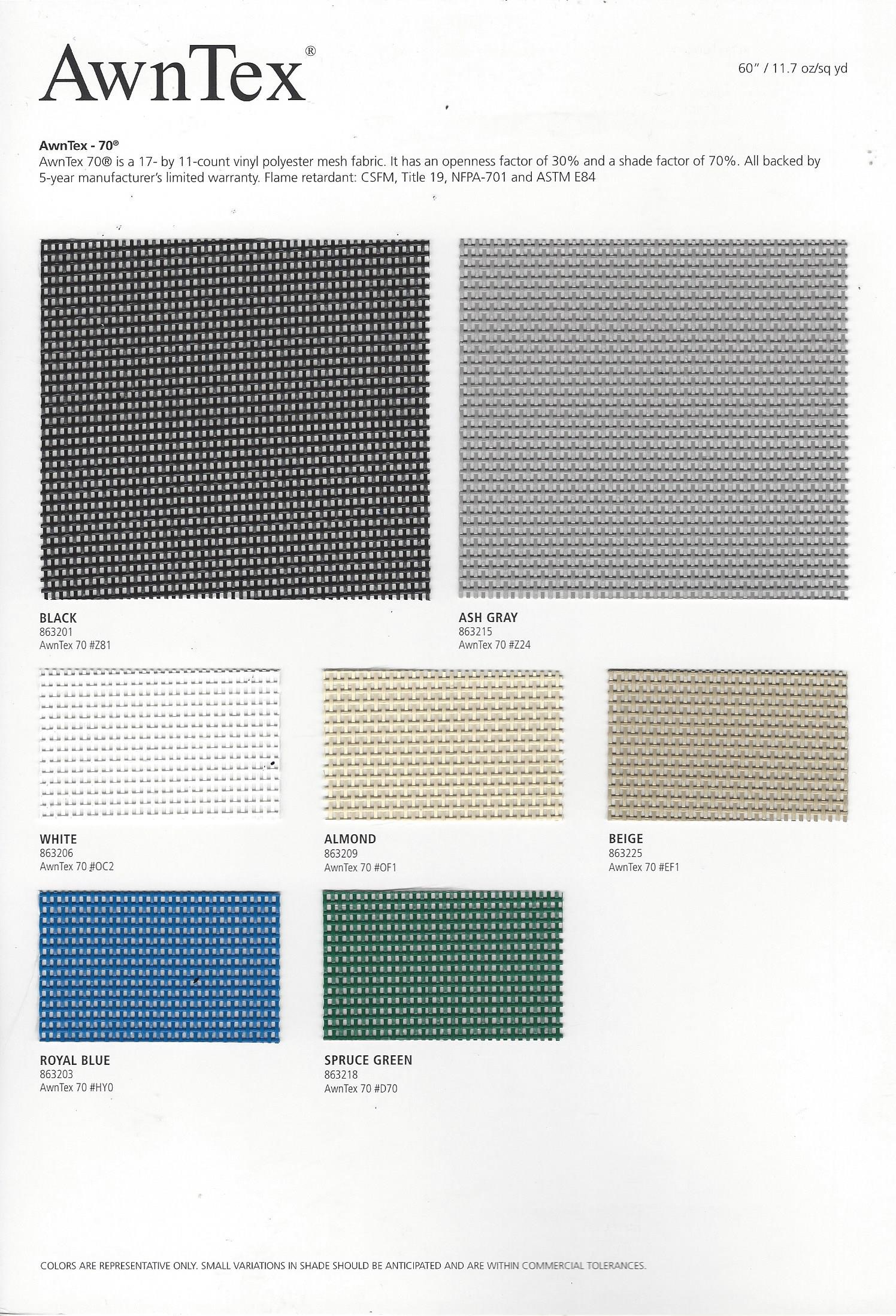 Other Shade fabrics are also available.