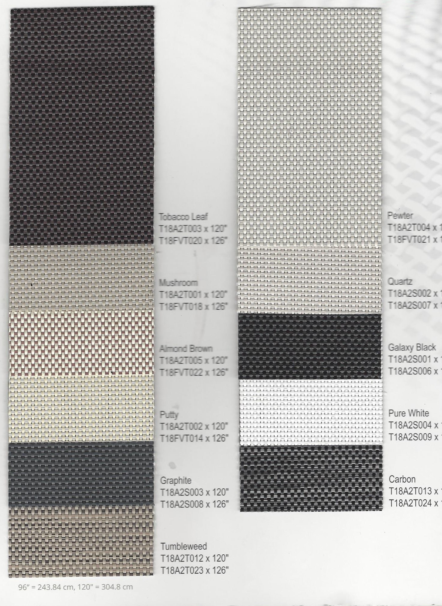 charts for our most popular fabrics. Our chart at