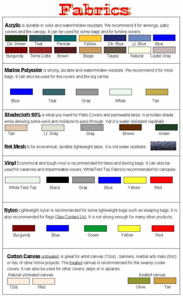 Sunbrella Color Chart , or Sunbrella's site is at: